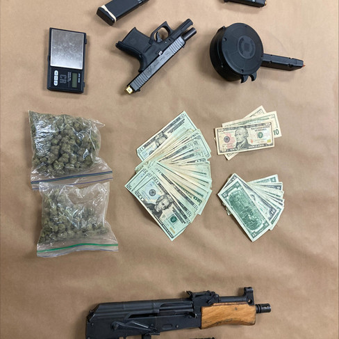 During the search, detectives located and seized a stolen handgun that had been equipped with a fully automatic conversion device, making it capable of firing as a machine gun. Deputies also recovered a Draco-style handgun, ammunition, and cannabis.